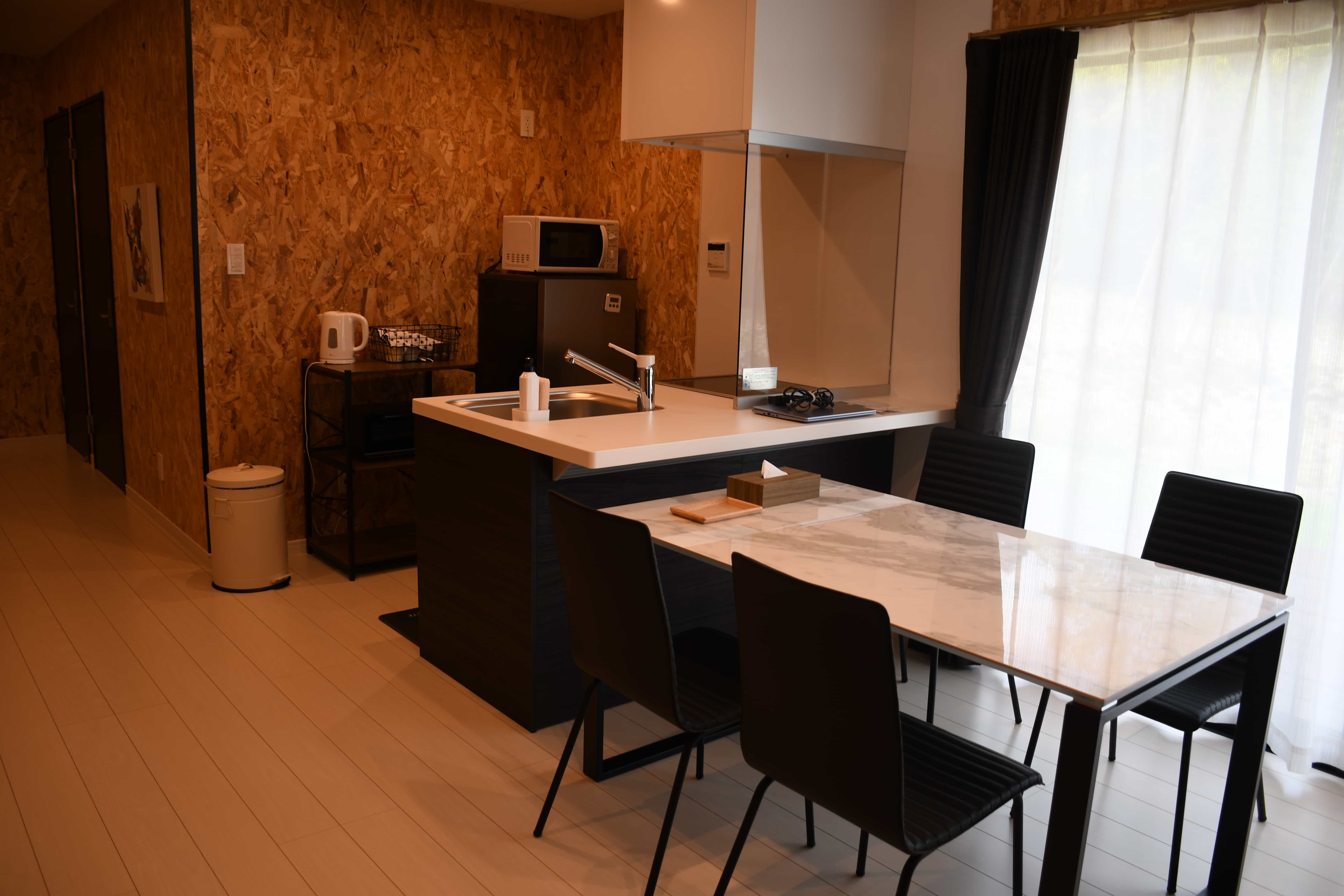キッチンでは、グリルの準備や簡単な料理をお楽しみいただけます。温泉水のお風呂で、一日の疲れをゆっくりと癒してください。お部屋では、Wi-Fiに接続してインターネットをご利用いただけます。朝は、キッチンで淹れた温かいコーヒーや紅茶を飲みながら、最高のひとときをお迎えください。